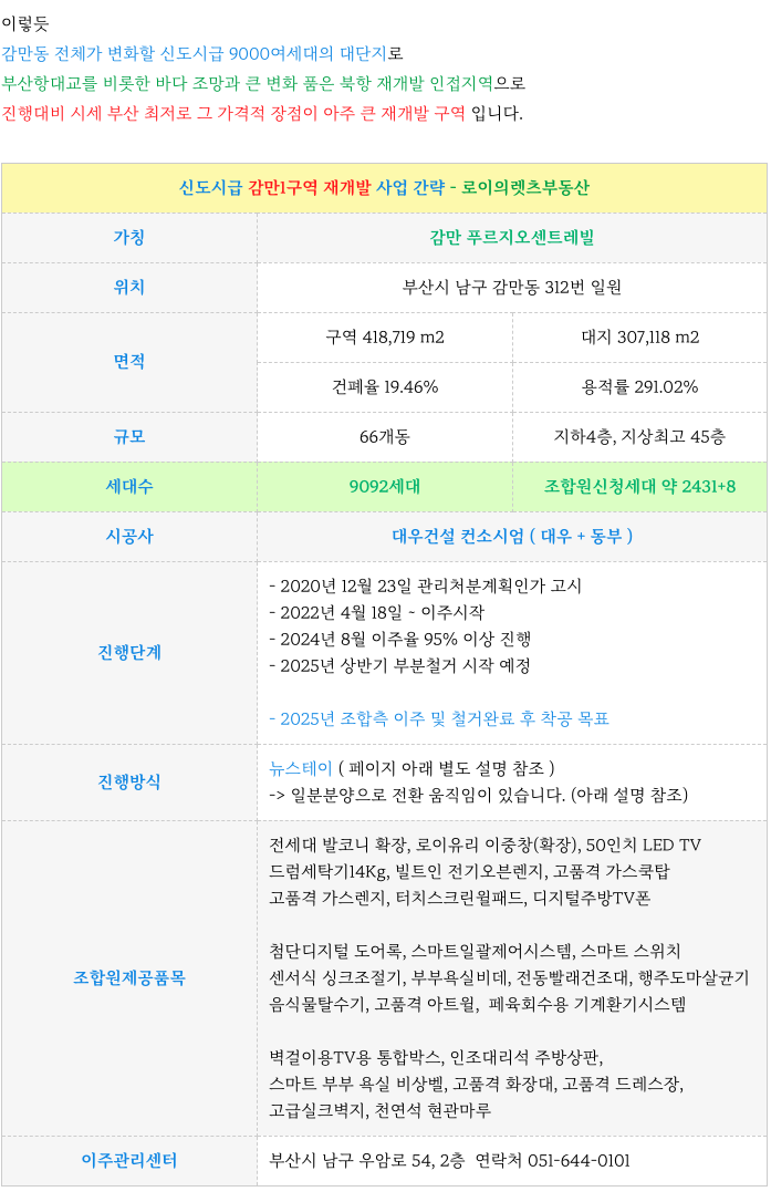 부산 전역 재개발에 대해 궁금하신 사항은 방문 또는 연락주시면 자세히 설명 드리겠습니다.