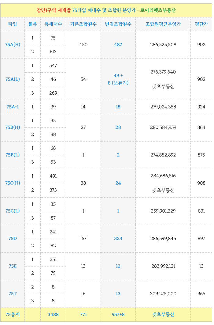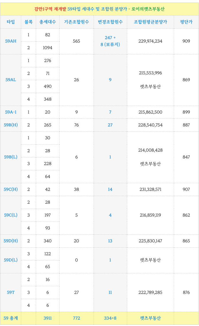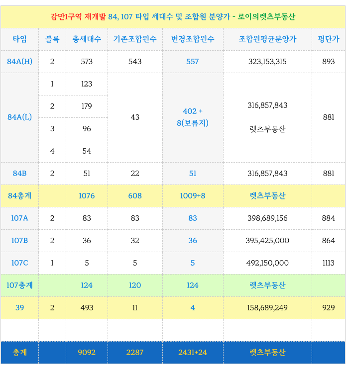 대단지 감만1구역 : 각 타입별 세대수 & 조합원 분양가 소개해 드리겠습니다.