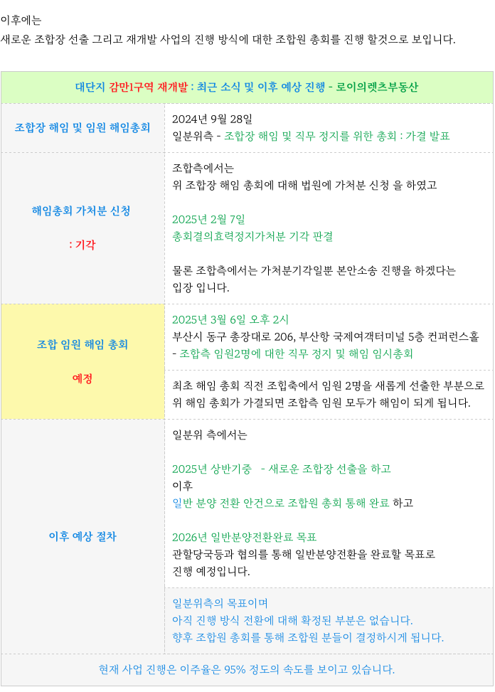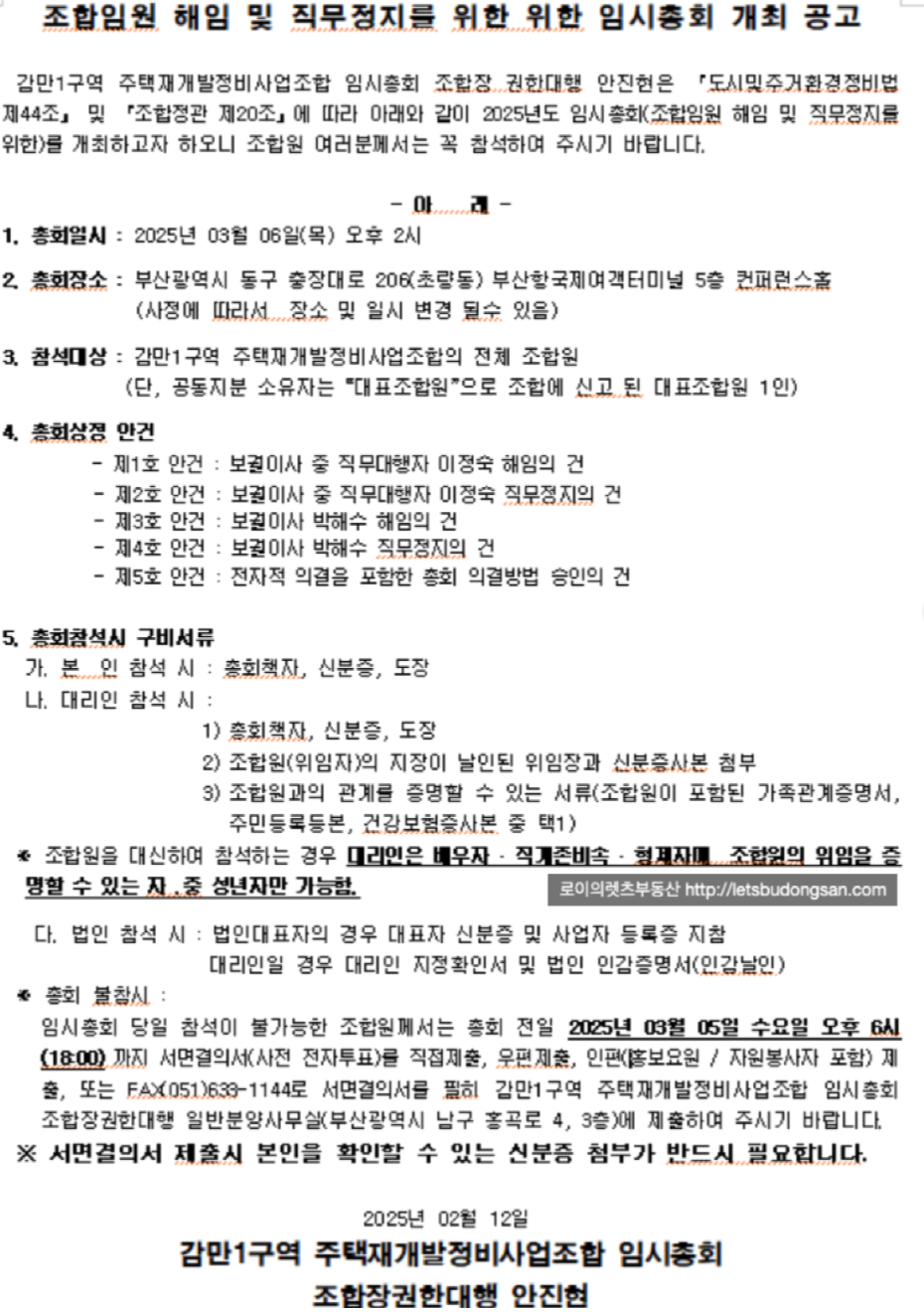 감만1구역 재개발 은 2025년 3월 임시 총회를 앞두고 있습니다.