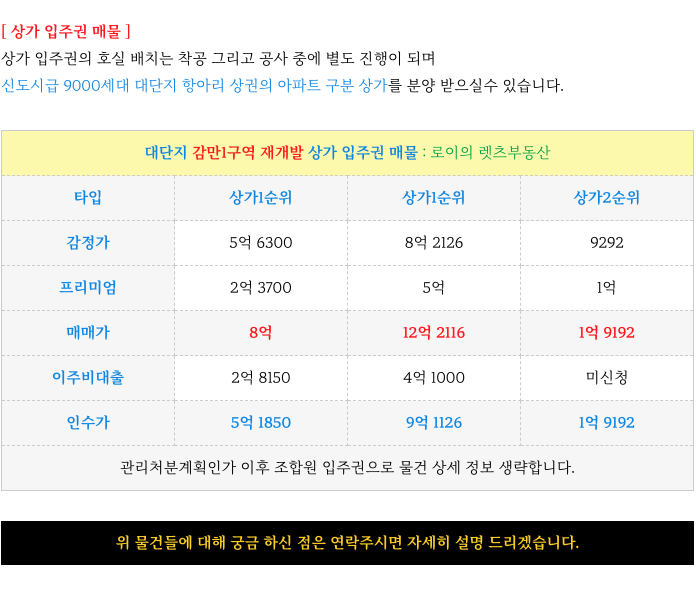 [ 부산, 양산, 경남 / 상가 / 건물 / 토지 / 재개발 / 재건축 전문으로 신속하고 정직하게 거래 합니다. ]