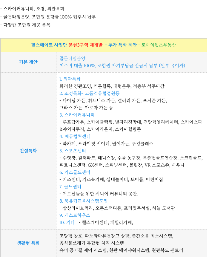 문현3의 입지적 위상이 높아짐에 따라 조합원 분들을 위해 업그레이드 추가 제안을 하였습니다.