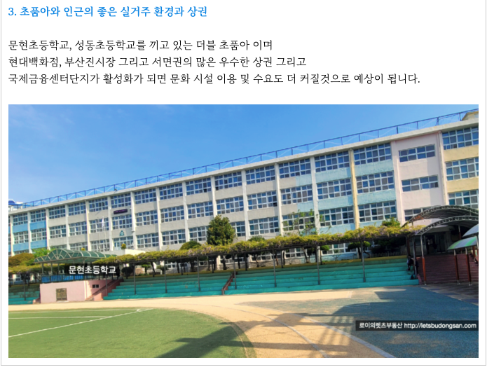 문현초, 문현여고를 구역 접한 초품아 단지이고