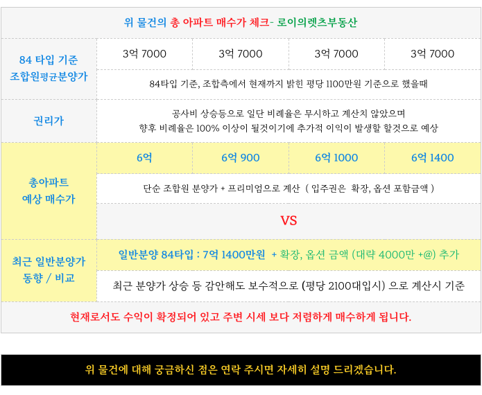 착공을 앞둔 진행 대비하여 낮은 시세, 이주비 실행으로 부담없는 투자 금액의 가격적 메리트,