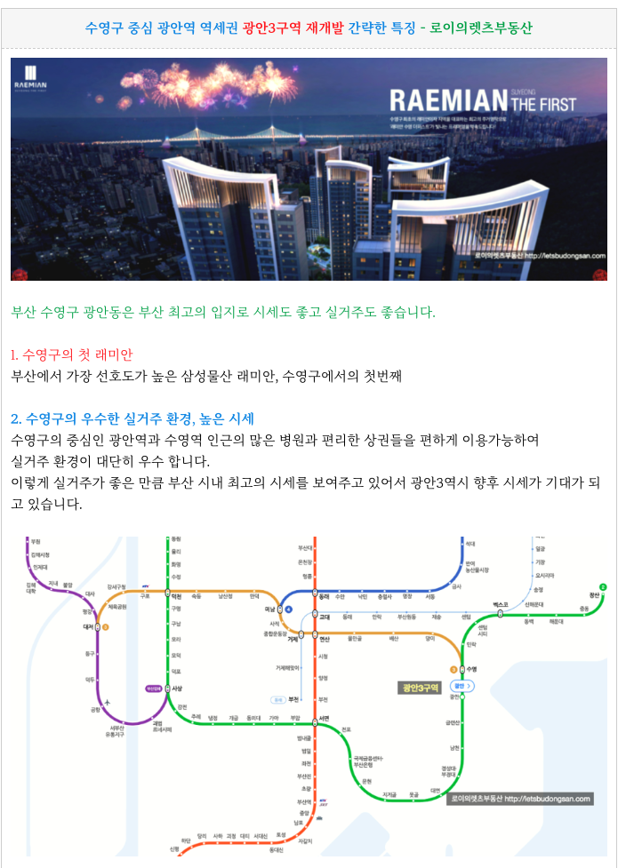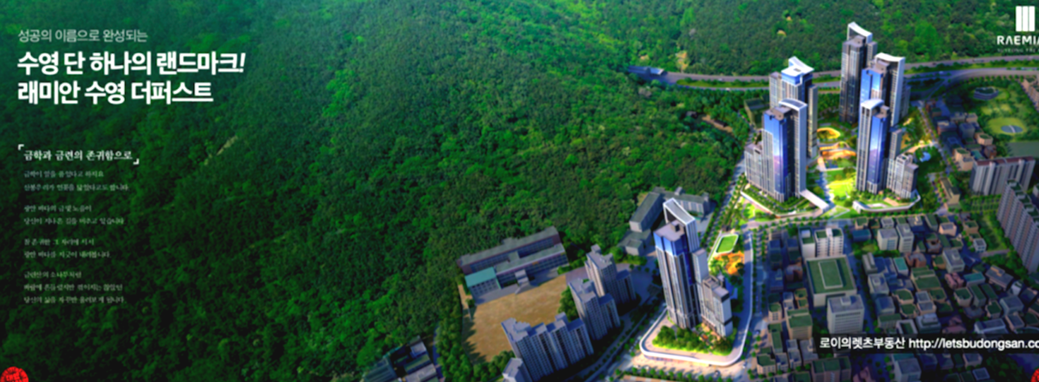 안녕하세요 로이의렛츠부동산 ( JAK 제이에이케이 부산 ) 입니다. 오늘은 수영구 최초 래미안 입지 광안...