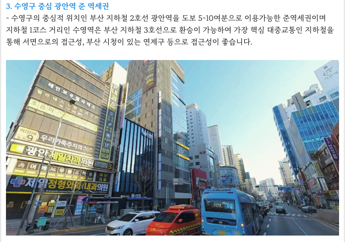 실거주 좋고 시세 좋은 수영구 그리고 그 중심 광안동의 우수한 입지에