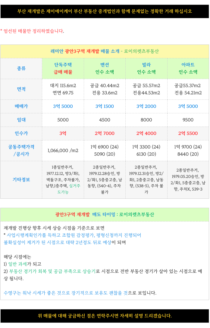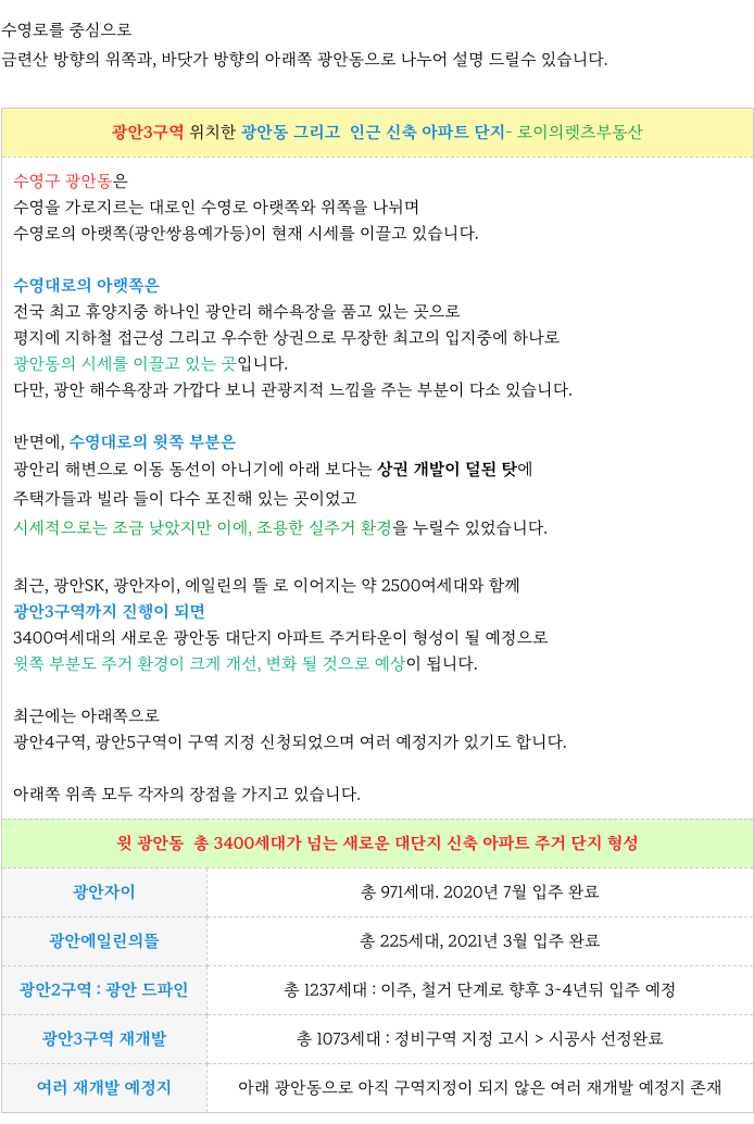 수영구 광안3구역 : 주택 급매 및 추천 매물 소개해 드리겠습니다.