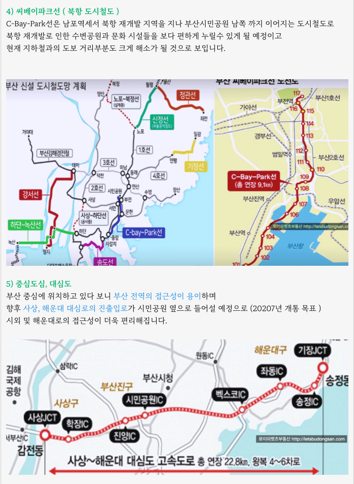 기장~사상 대심도와 북항 연결되는 씨베이파크선 까지 시민공원이 연결될 계획으로