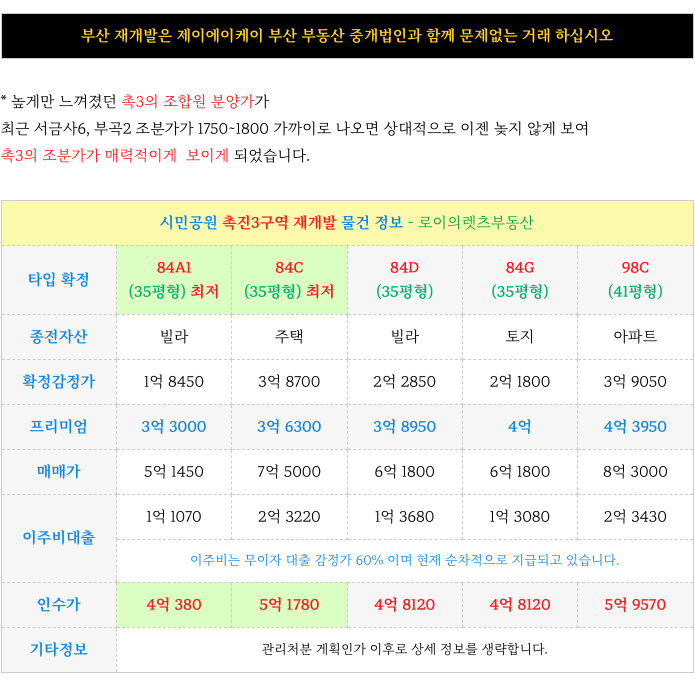 내륙 대장주촉진3구역 재개발 : 현 최저 매물 & 진행 상황 소개 드리겠습니다..
