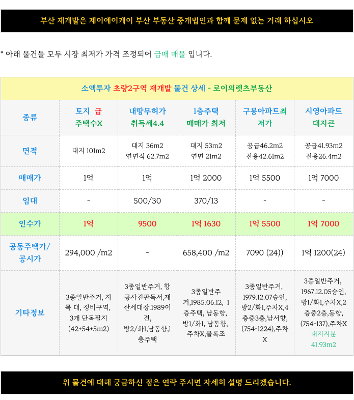 부산 경남 건물 토지 상가 주택 등 부동산 물건 투자 및 물건 접수 받습니다.