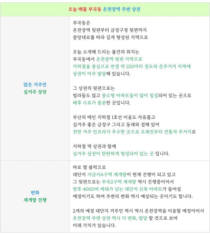 부곡동 , 온천장역 주변 주변 상황을 간략 설명 드리겠습니다.