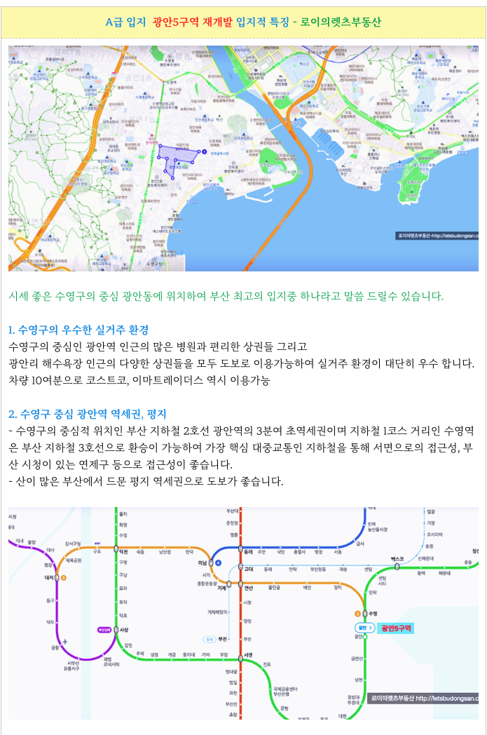 수영구 그리고 광안동 그리고 광안5의 입지는 모두가 인정하는 A급 입지 입니다.