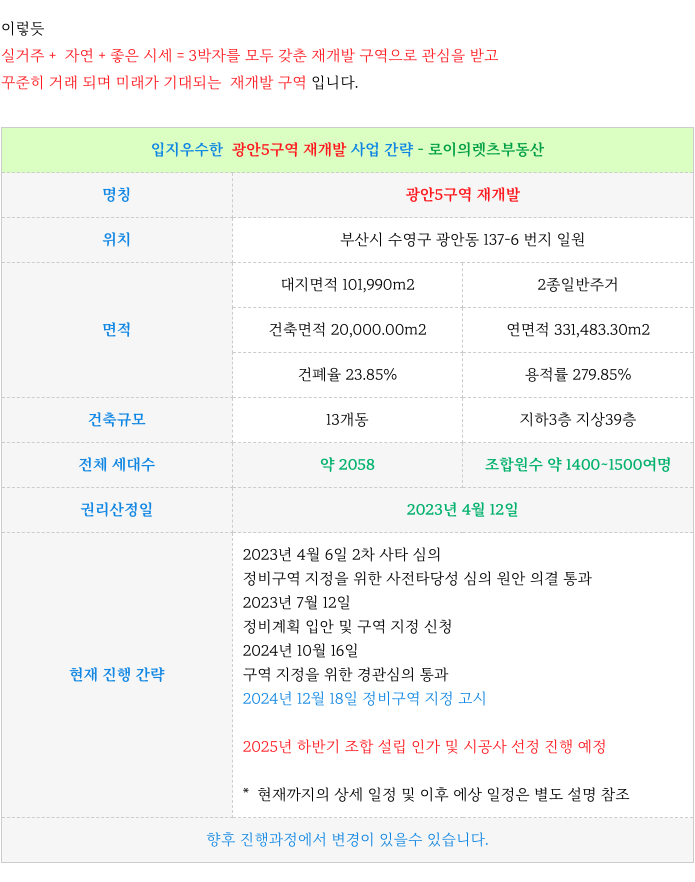 5. 주요 특징 체크 : 광안5구역 재개발 :