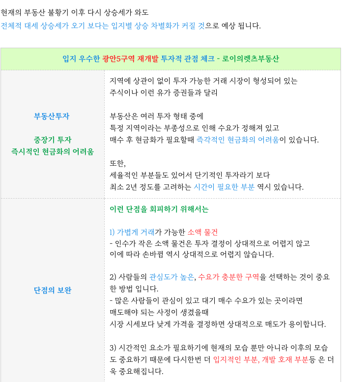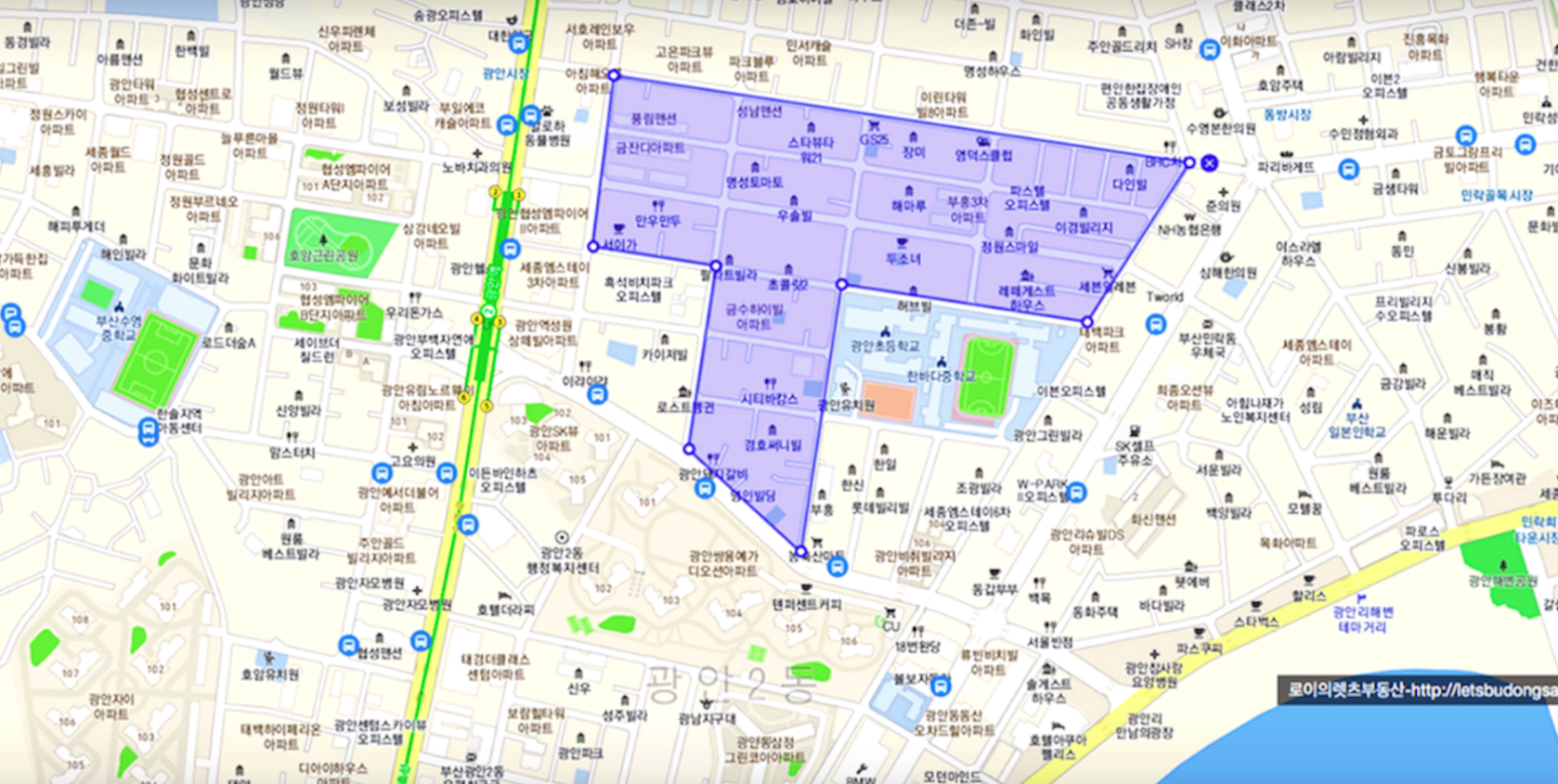 + 광안동 재개발 예정지들이 모두 교통 좋고 살기 좋아 공동주택(원룸등)이 많습니다.