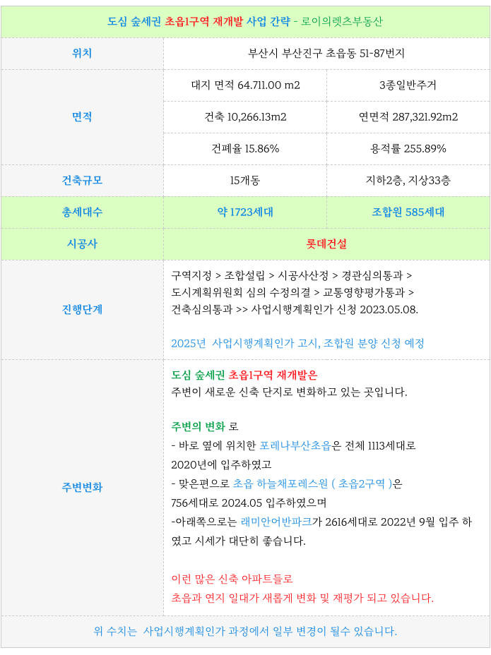 4. 초읍1구역 재개발 : 사업 주요 간략 특징