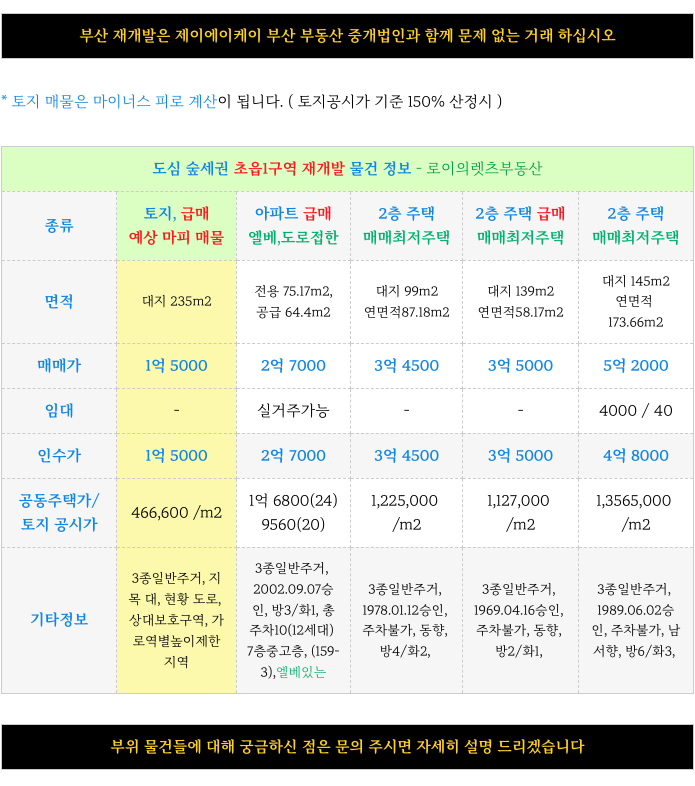 초읍1구역 재개발 : 초 급매 최저가 토지 매물과 추천 매물 소개해 드리겠습니다.