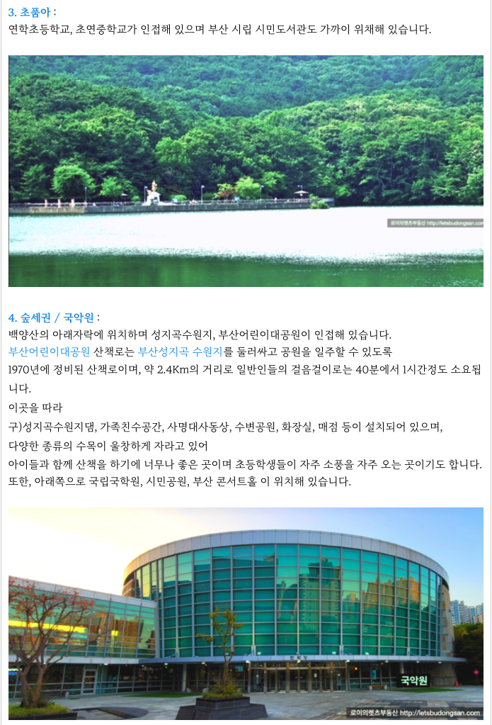 푸른 숲과 파아란 호수가 함께 하는 아름다운 자연 - 성지곡 수원지와 어린이 대공원 이 곁에 있어