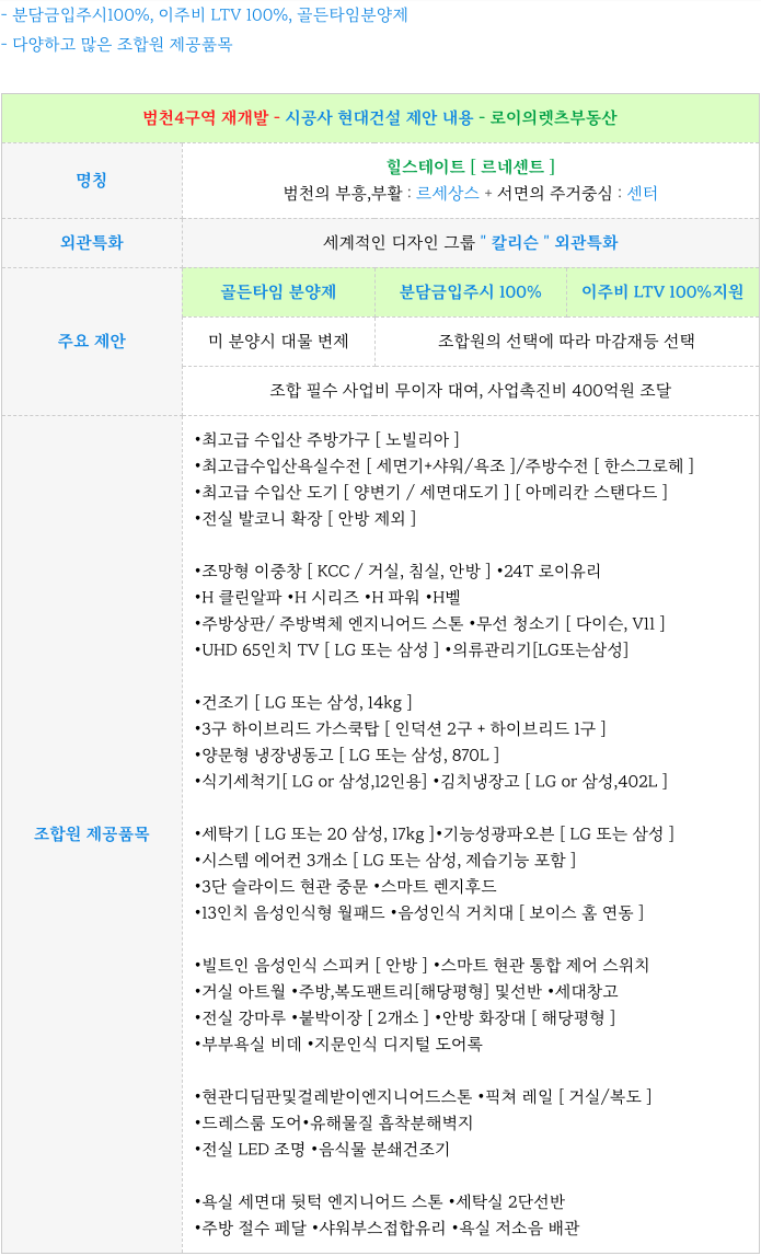 4. 시공사 현대 건설 제안 부분 : 범천4구역 재개발 :