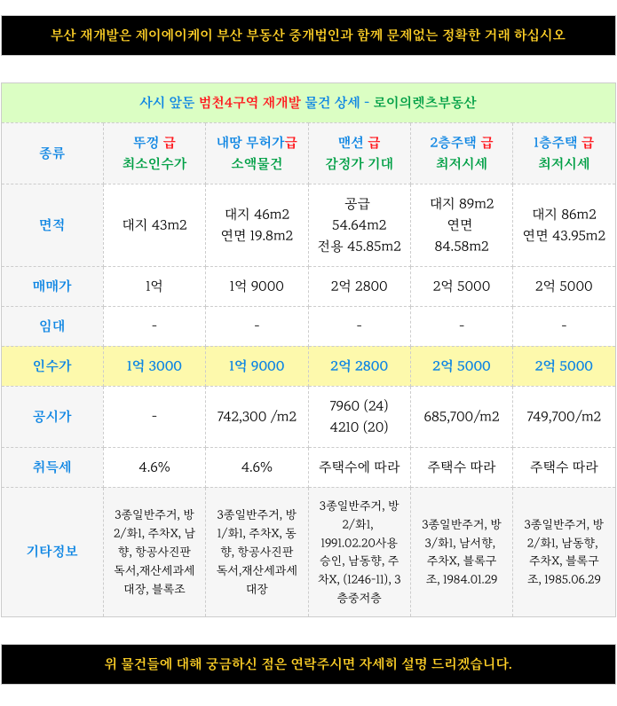 부산 전역 재개발에 대해 궁금하신 사항은 방문 또는 연락주시면 자세히 설명 드리겠습니다.