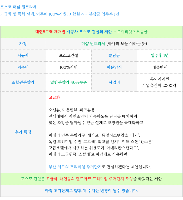 3. 대연8구역 재개발 : 시공사 포스코 건설의 주요 제안 체크