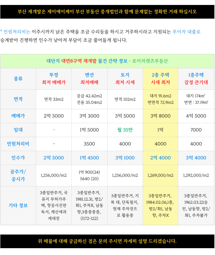 대연8구역 재개발 최저 토지, 연립 매물 ( 인수가 1.45부터 )