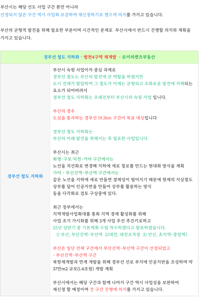 이와 함께 부산시에서는 범천동~ 부산진까지 역시 지하화에 큰 의지를 가지고 있어 기대 됩니다.