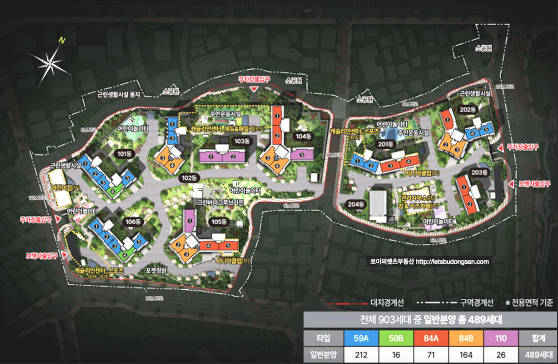 지하철 초역세권 임에도 작지않은 903세대의 중형급 단지입니다.