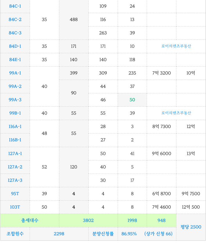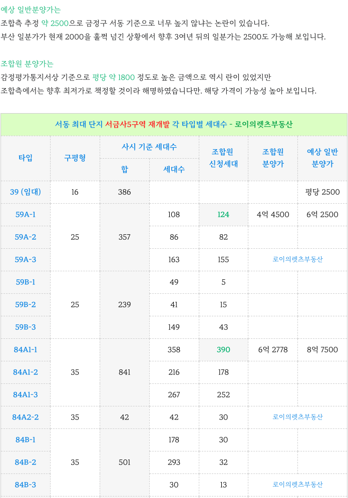 4. 각 타입별 세대수, 조합원 분양가 체크 : 서금사5구역 재개발 :