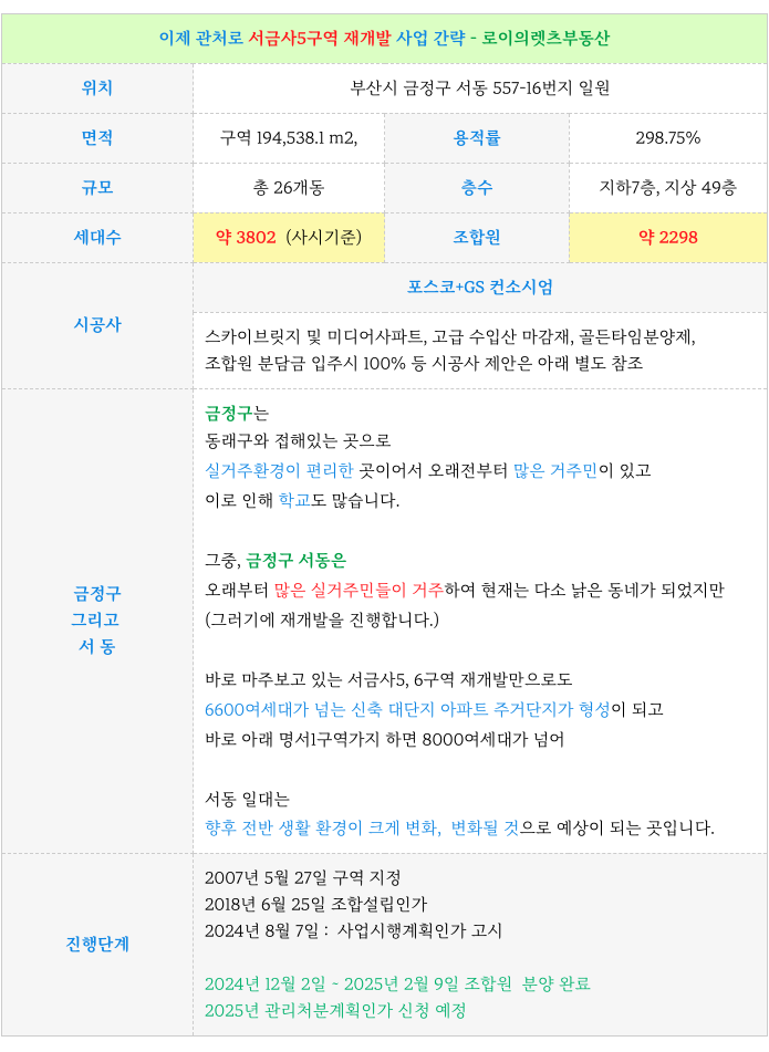 서금사5구역 재개발 : 현재까지 주요 진행 사항 & 예상 일정 체크 등 추가 정보는 아래 페이지를 참고 부탁드립니다.