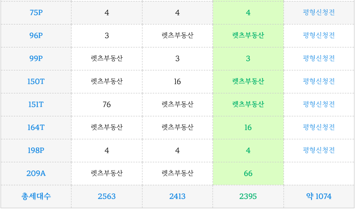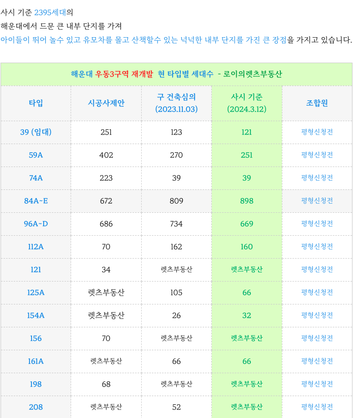5. 우동3구역 재개발 : 계획된 각 타입별 세대수 :
