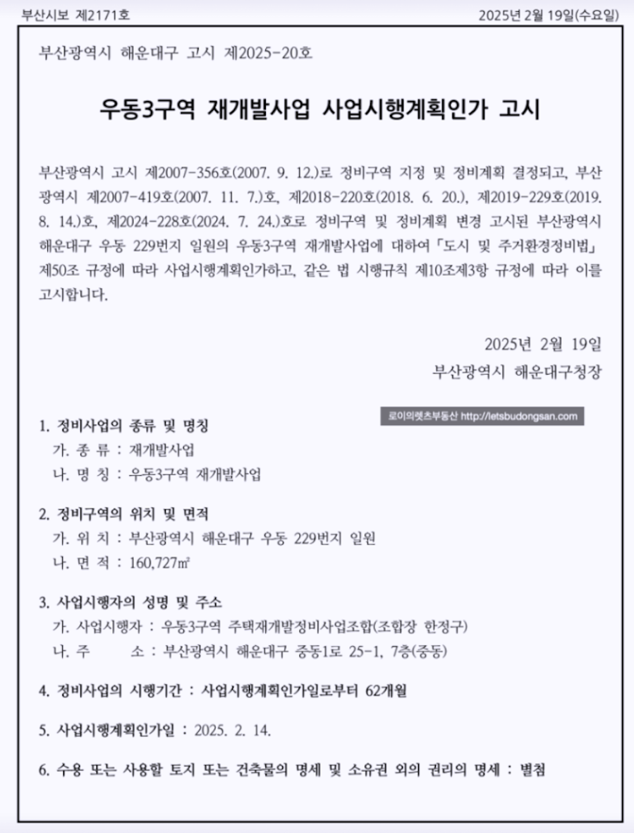 - 2025년 2월 19일 : 사업시행계획인가 고시