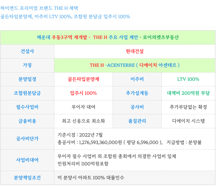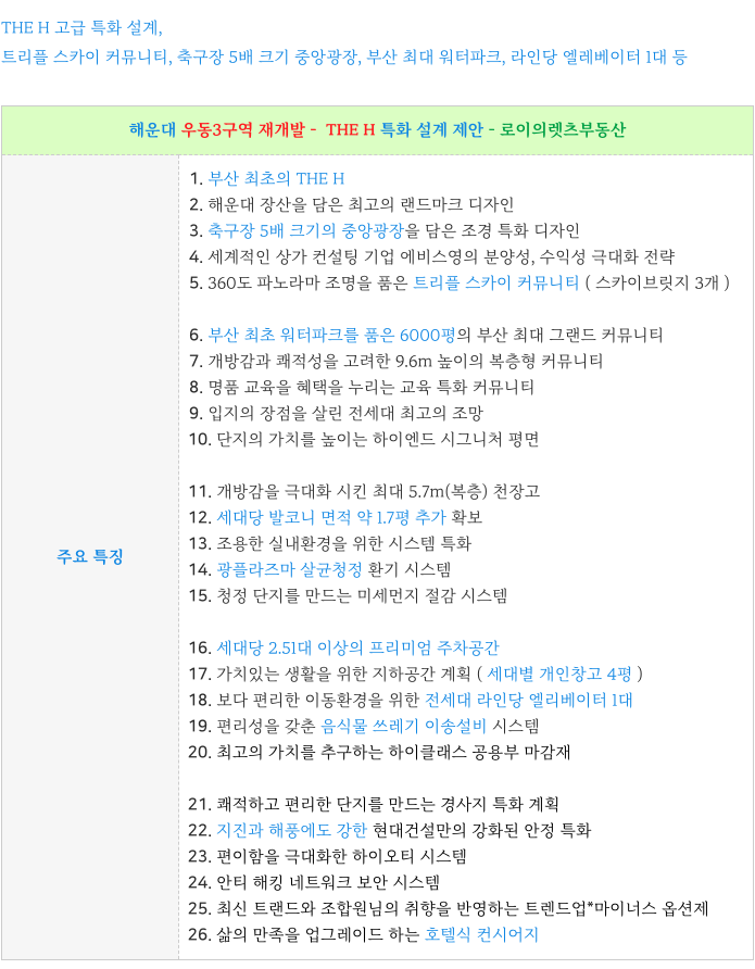 4. 우동3구역 재개발 : THE H - 현대 건설 특화 제안 :
