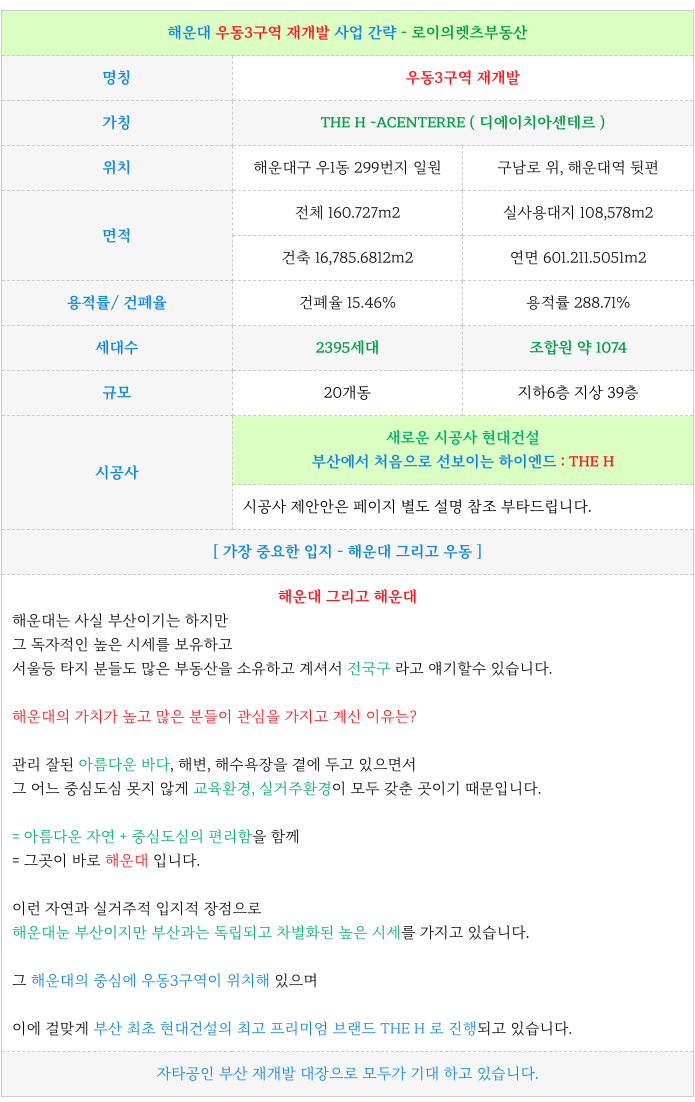 1. 우동3구역 재개발 : 사업 요점 / 간략 진행 :
