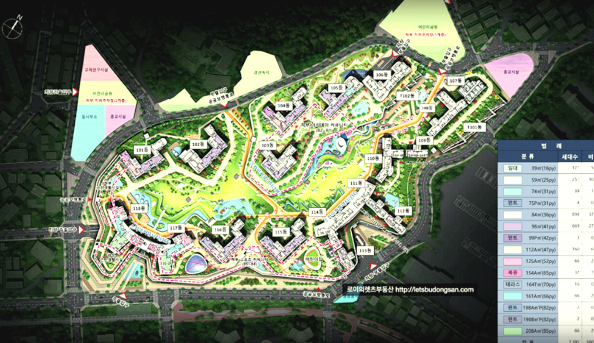 해운대의 다수 단지들이 단지규모가 작은 반면, 2395세대라는 대단지로 조성되어