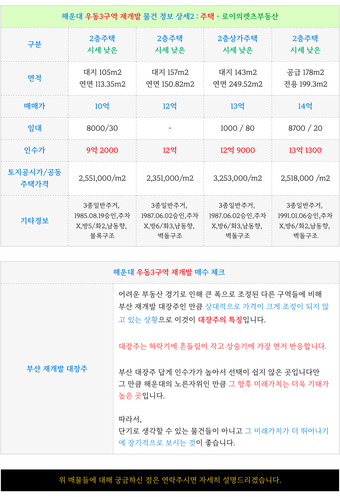 2. 우동3구역 재개발 : 현재 가능한 매물 소개 :