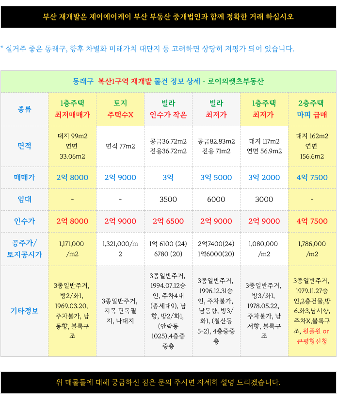 부산 전역 재개발에 대해 궁금하신 사항은 방문 또는 연락주시면 자세히 설명 드리겠습니다.