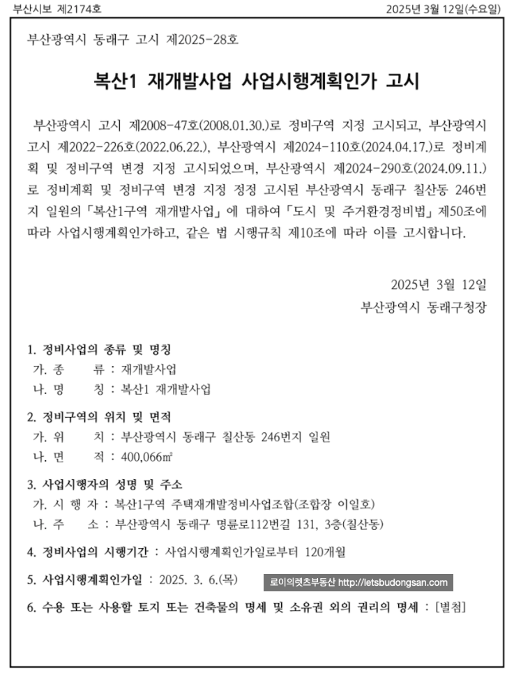 동래구 대장 복산1구역 재개발 : 진행 상황 체크 & 현 최저 매물