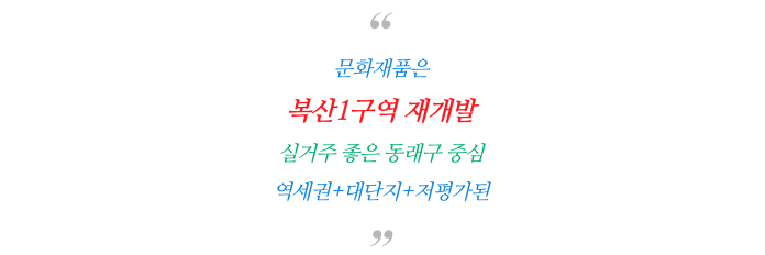 안녕하세요 로이의렛츠부동산 ( JAK 제이에이케이 부산 ) 입니다. 오늘은 동래구 대장 복산1구역 재개발...