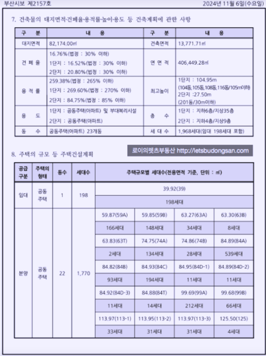 5. 계획된 각 타입별 세대수 : 부곡2구역 재개발 :