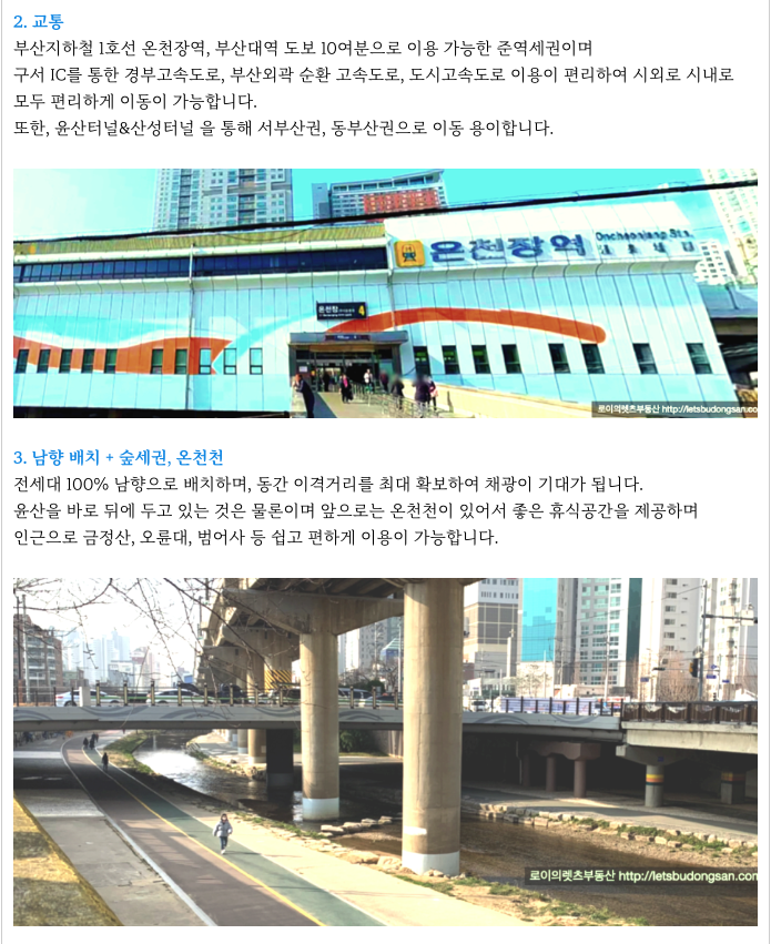 초품아, 준역세권, 숲세권, 온천천, 교통 편리