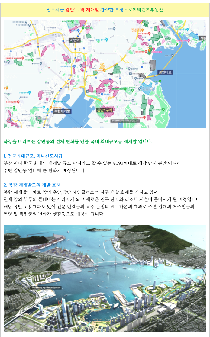 부산 전역 재개발에 대해 궁금하신 사항은 방문 또는 연락주시면 자세히 설명 드리겠습니다.