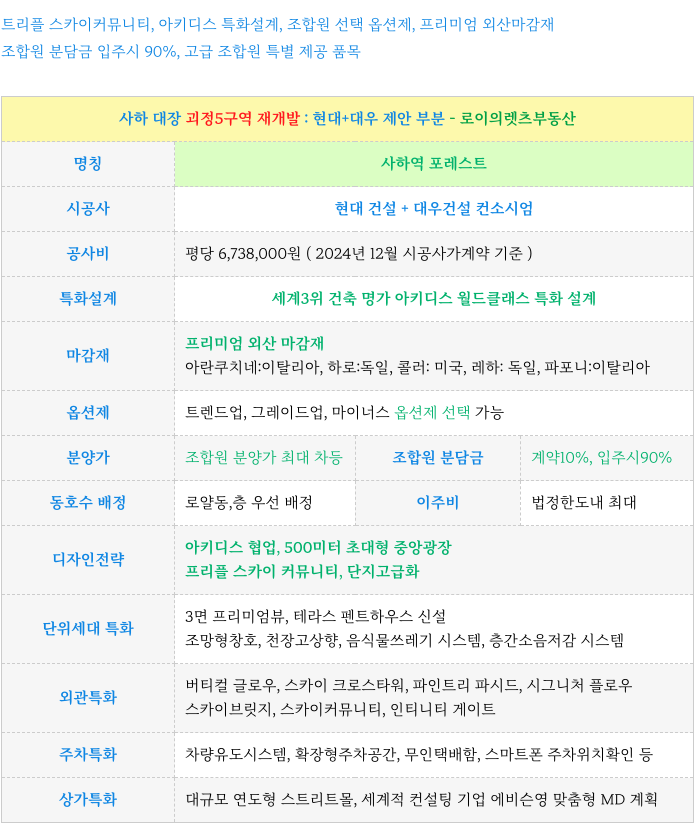5. 괴정5구역 재개발 : 사업 주요 간략 특징 :
