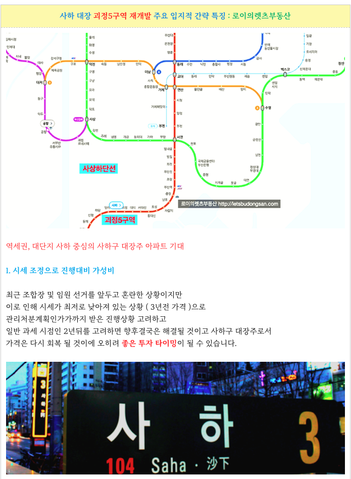 괴정5구역 재개발 : 진행 대비 가성비 우수한 현 최저 매물과 구역 진행, 특징등 소개해 드리겠습니다.