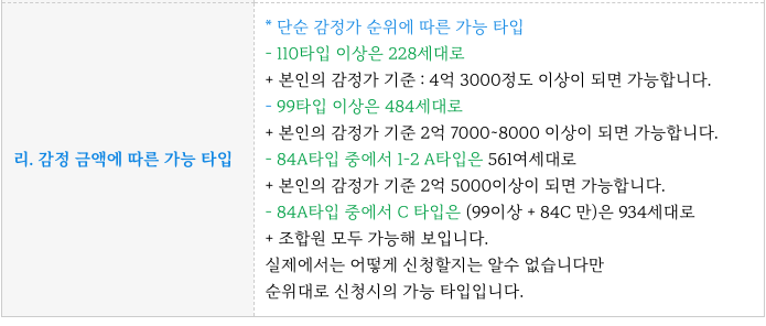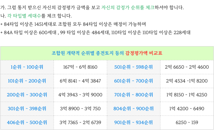 2) 감정평가 순위 그리고 내 순위 체크, 평형 선택