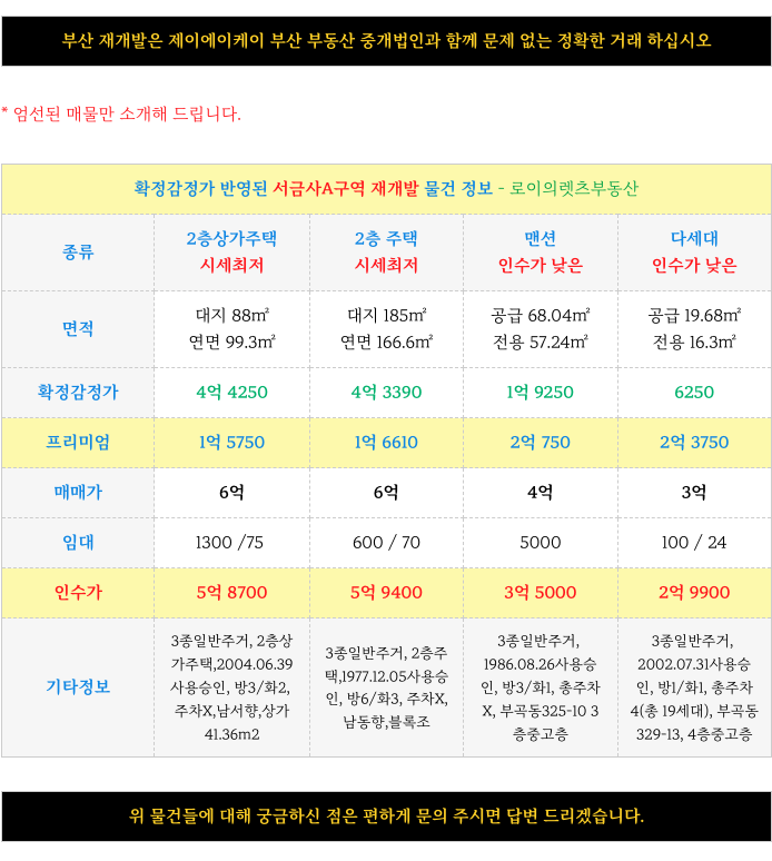 부산 전역 재개발에 대해 궁금하신 사항은 방문 또는 연락주시면 자세히 설명 드리겠습니다.