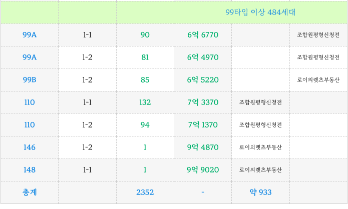 4. 계획된 각 타입별 세대수 : 서금사A구역 재개발 :