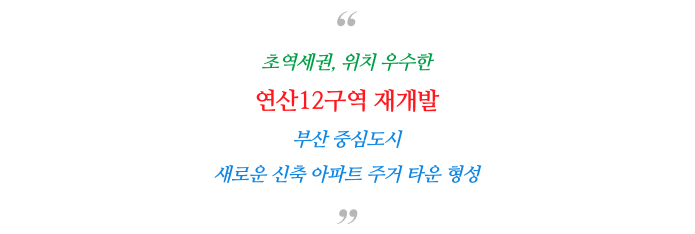 중심도심 3호선 물만골역, 1호선 연산역 역세권 대단지로