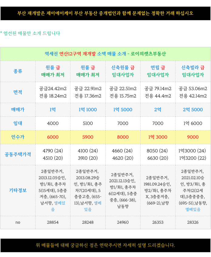 2. 현재 가능한 매물 소개 : 연산12구역 재개발 :
