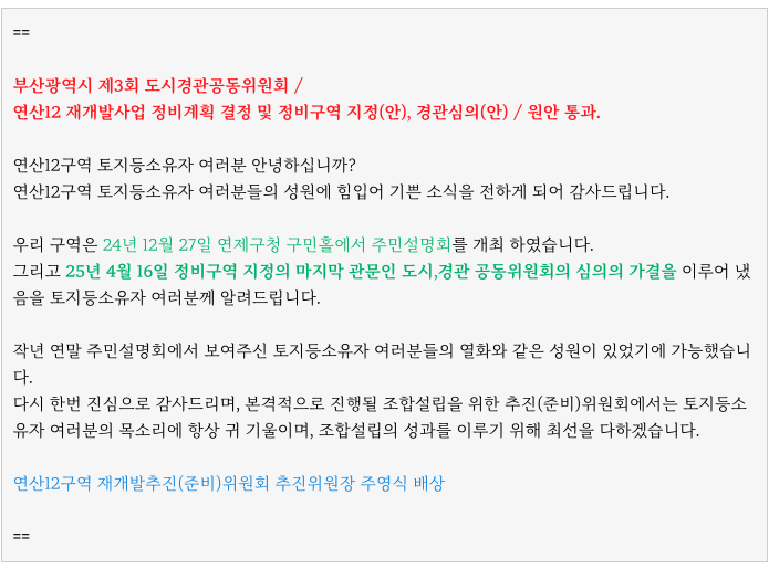 - 2025년 4월 16일 : 정비구역 지정을 위한 경관심의 : 통과