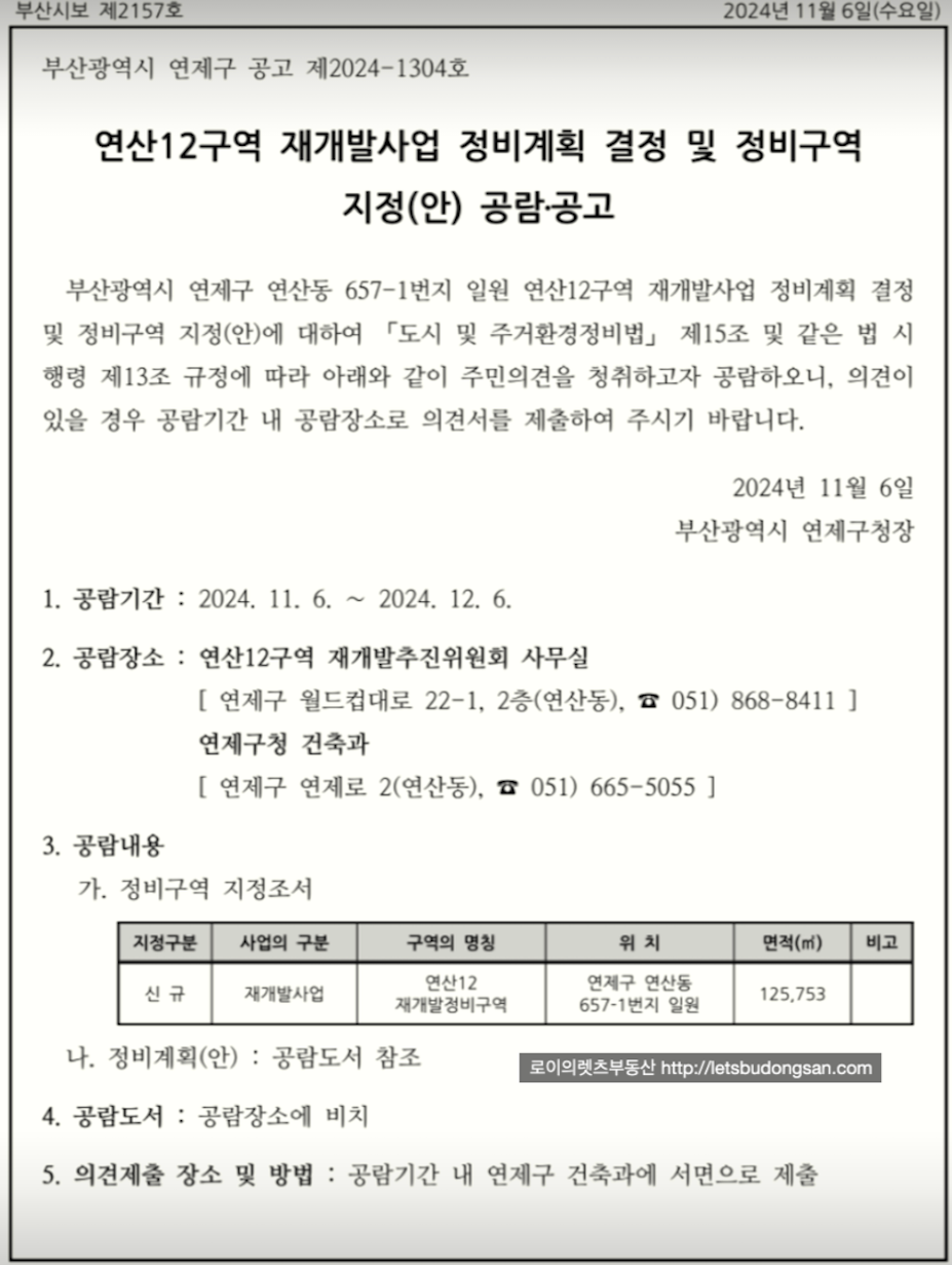 - 2024년 11월 6일 ~ 12월 6일 정비구역 지정 공람 공고