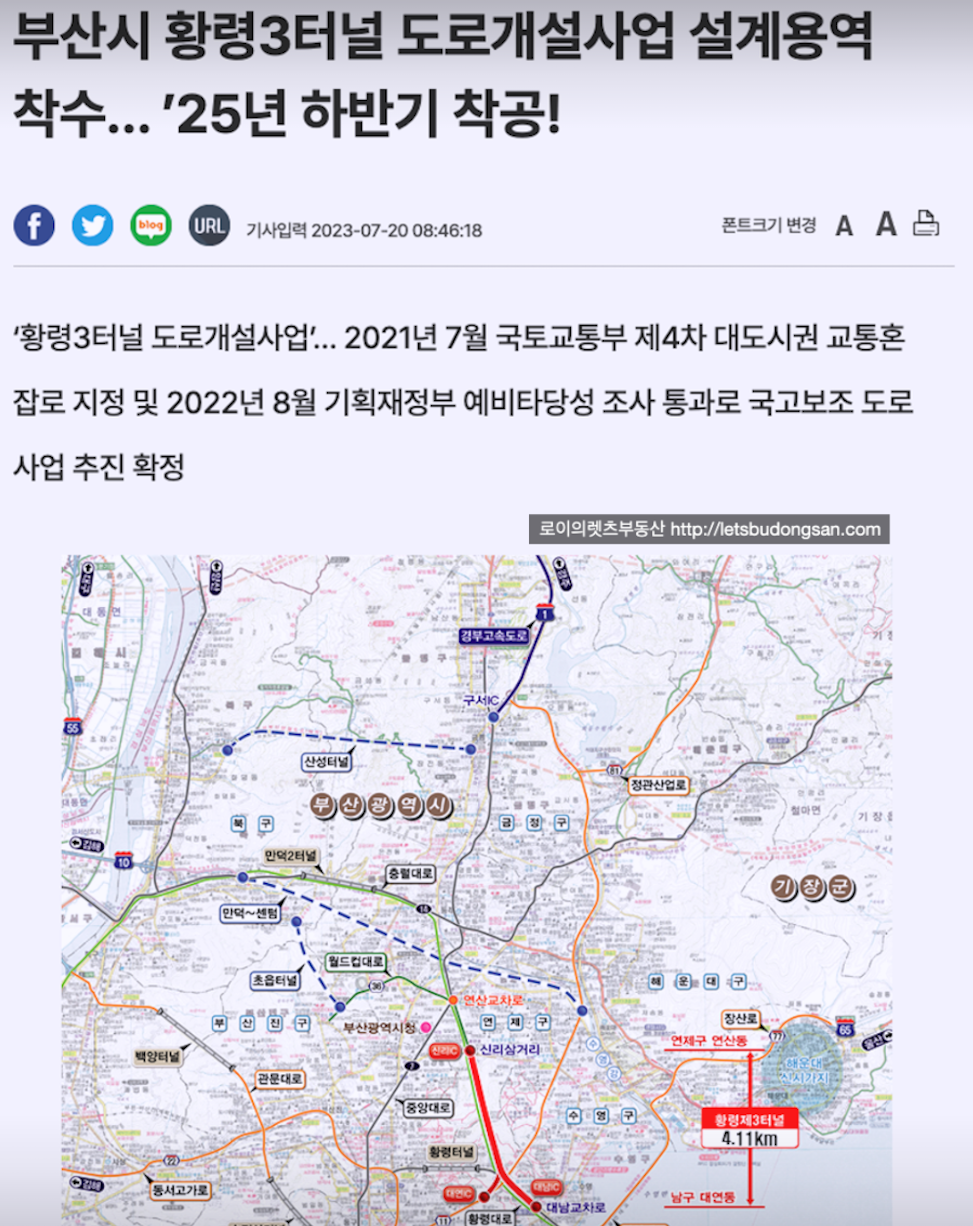 신리삼거리와 대연동으로 연결되는 황령3터널이 2030 개통 목표로 진행중으로